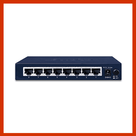 The GSD-803 is designed with modern metal compact housing and easy for deployment of high speed Gigabit networking in home or SOHO applications. Providing 16Gbps internal switching fabric, the GSD-803 can handle an extremely large amount of data in a secure topology linking to a backbone or high capacity servers. The GSD-803 provides 4K MAC address table, and wire-speed packet transfer performance without risk of packet loss. The high data throughput of the device makes it ideal for most Gigabit environments, especially for the network to be upgraded to a Gigabit environment.
