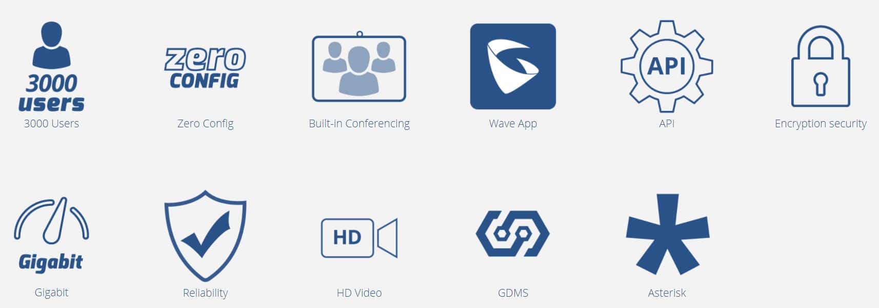 - Built-in conferencing & meetings platform; supports desktop, Wave app, and SIP endpoints